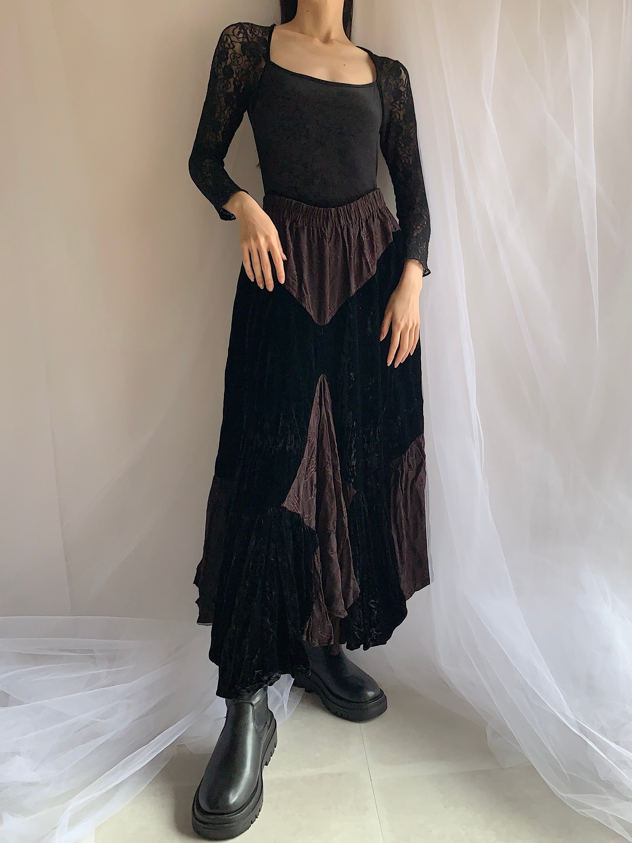 velour switching design skirt made in USA