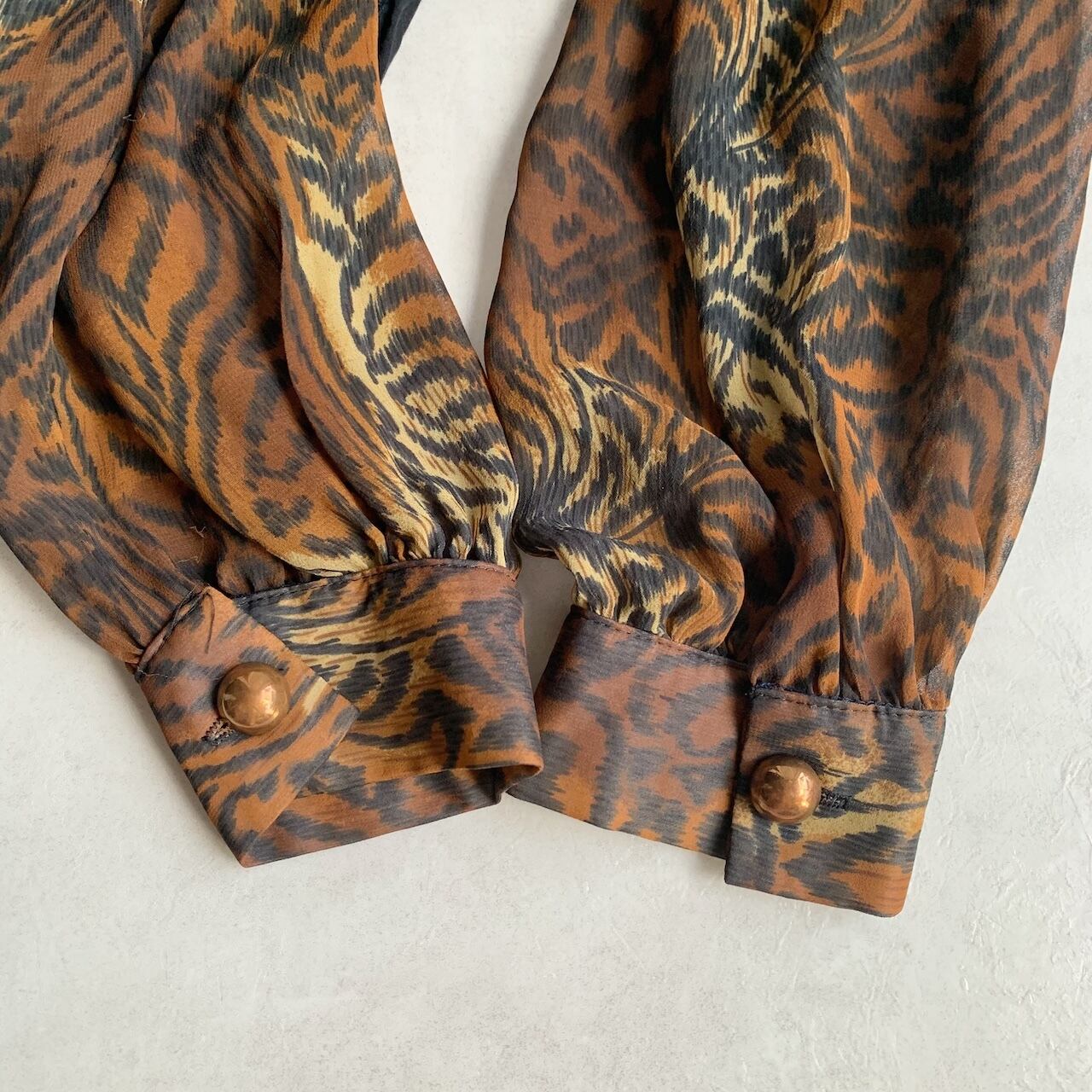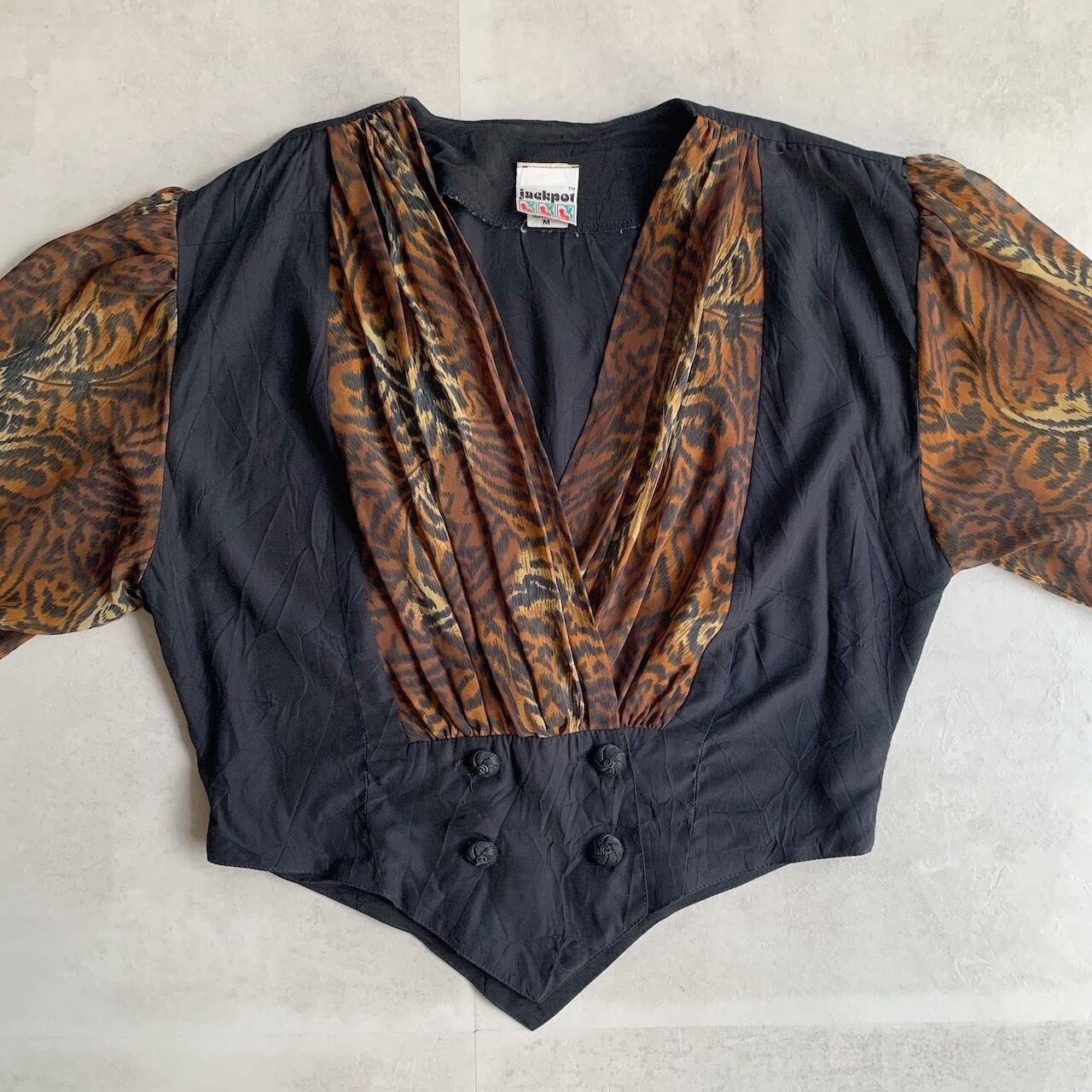 leopard switching design sheer double shirt made in USA
