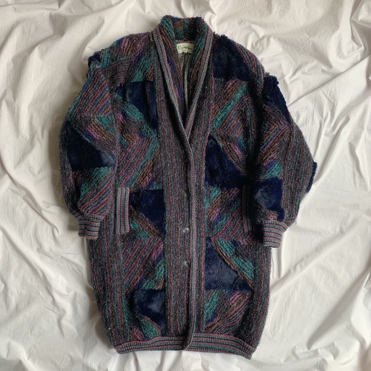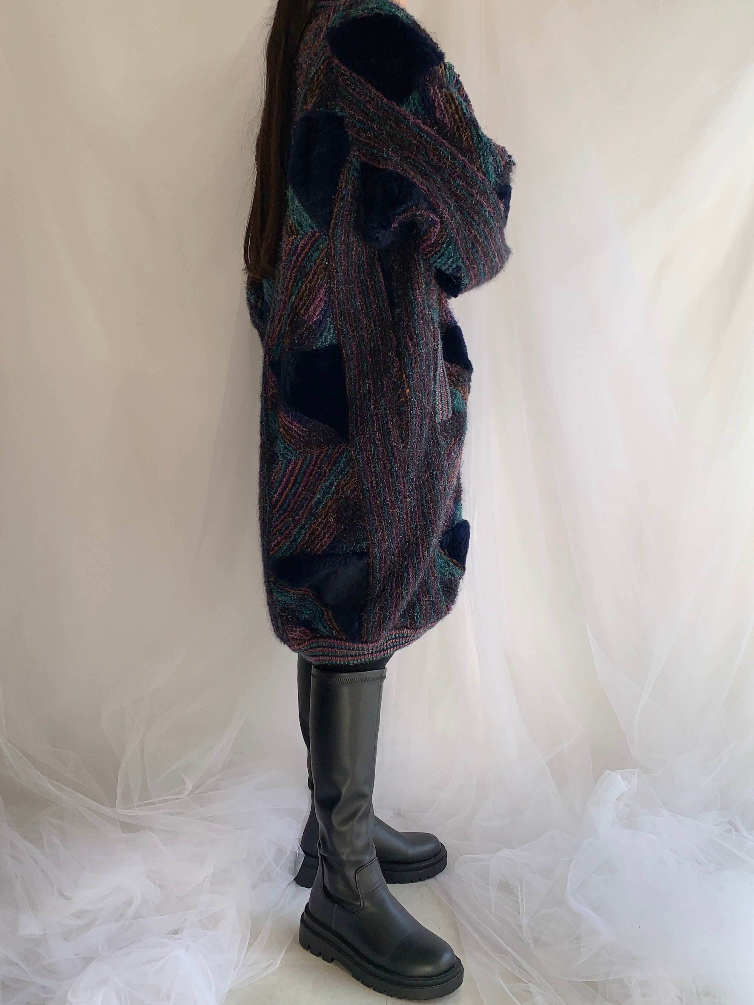 crazy pattern design long knit cardigan made in Italy