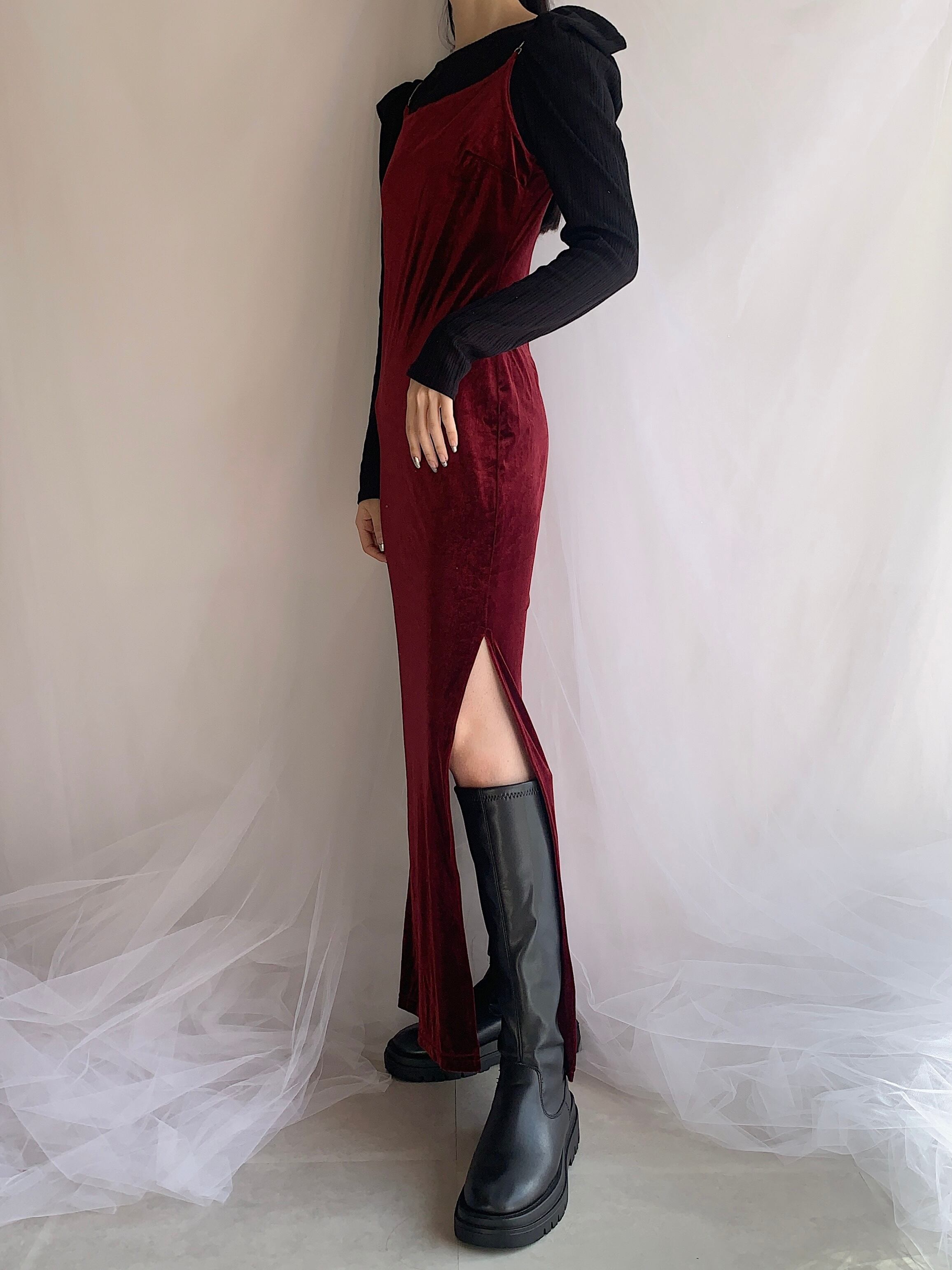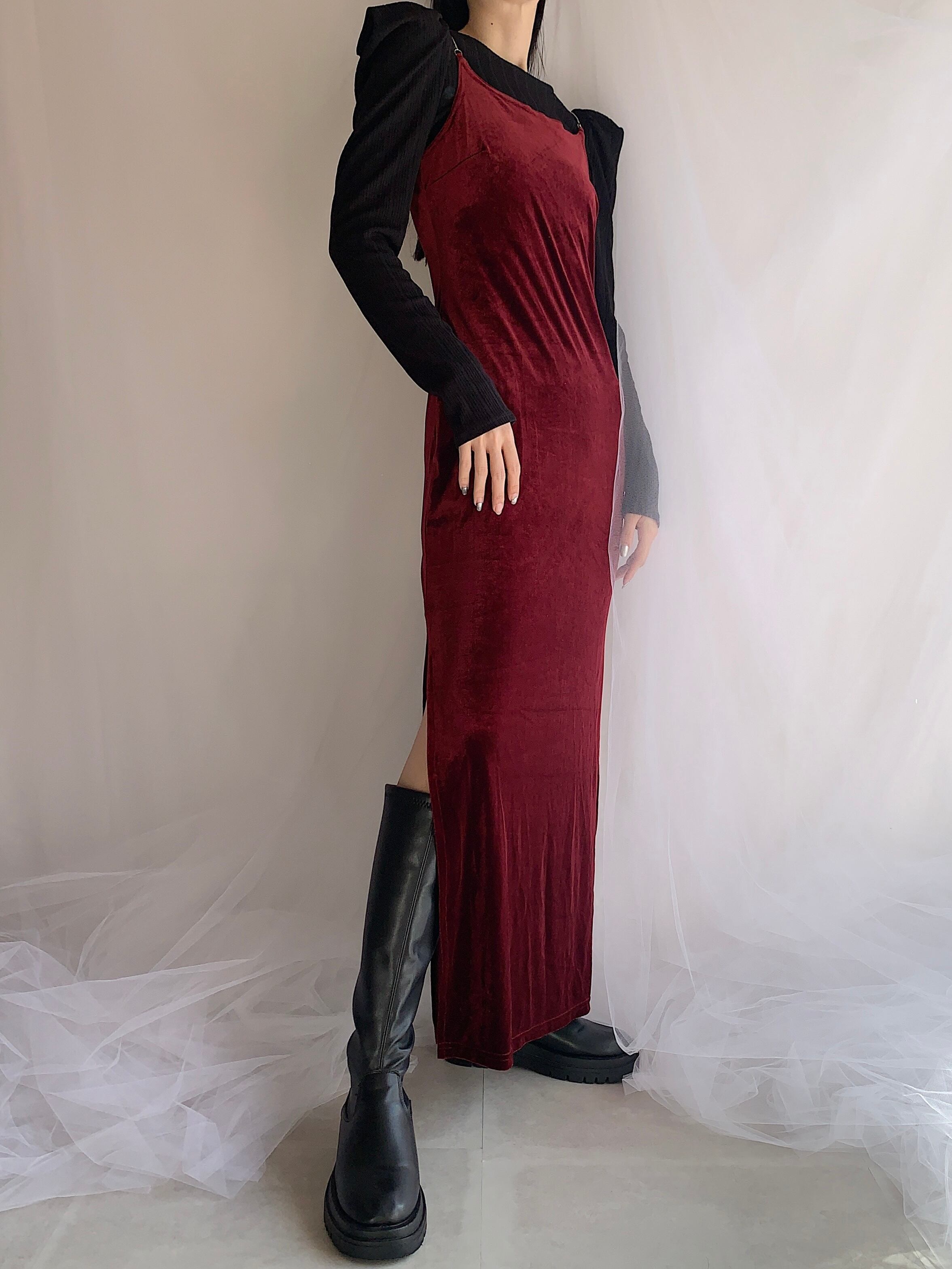 side slit design velour camisole one-piece made in USA