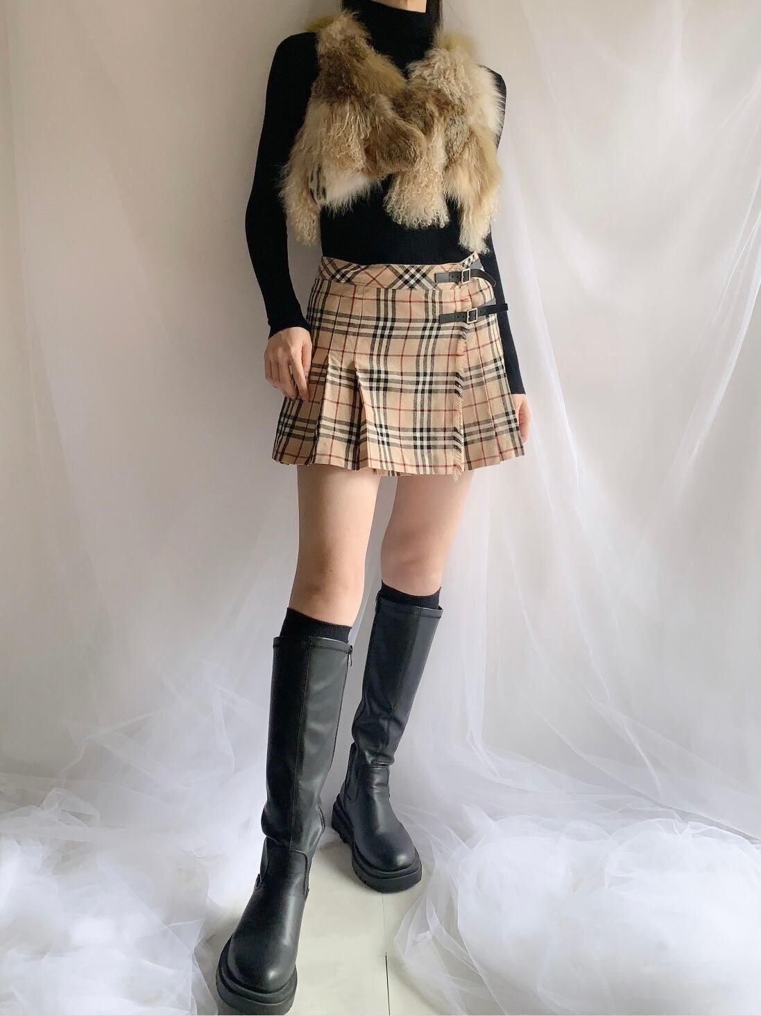 BURBERRY check pleats belt design wrap skirt