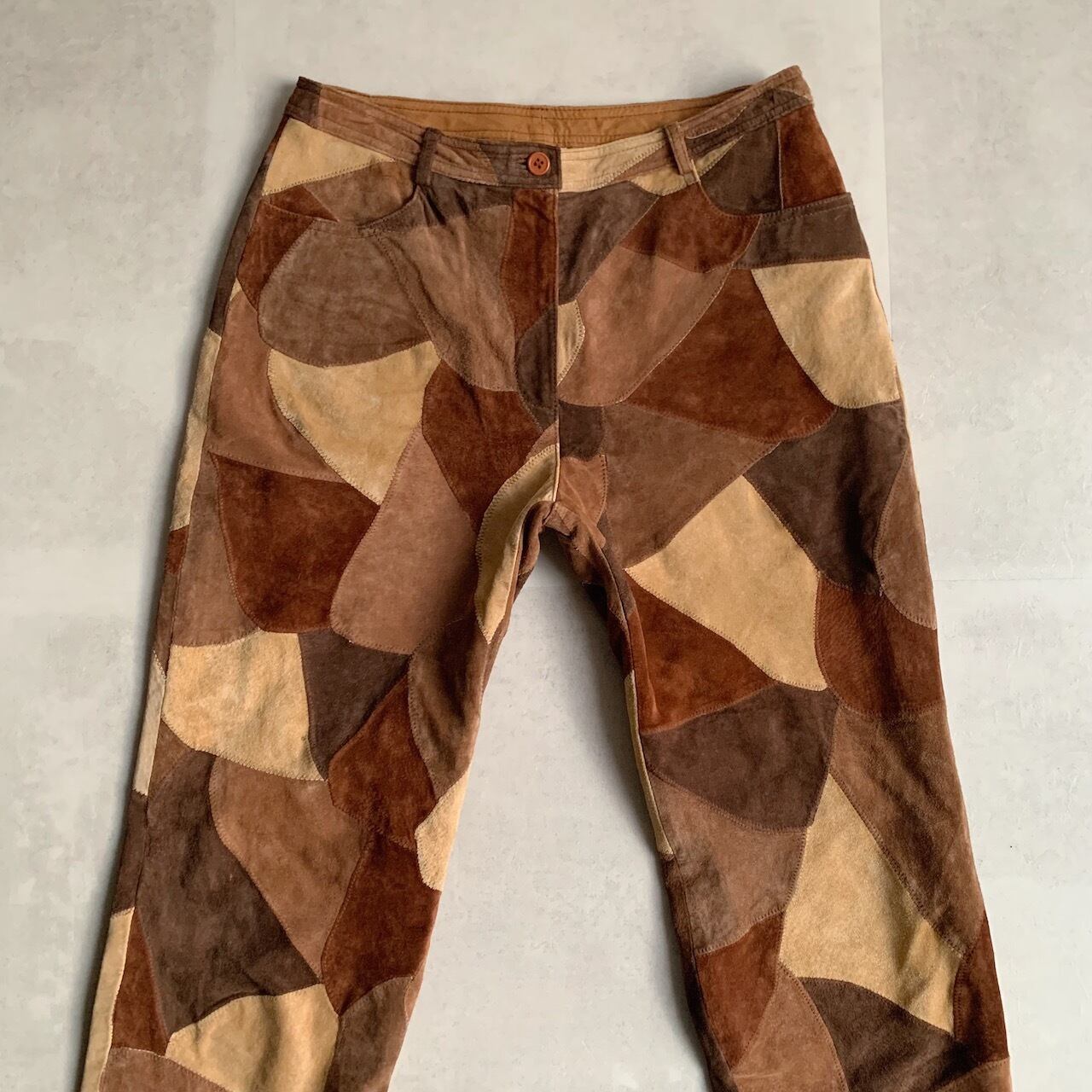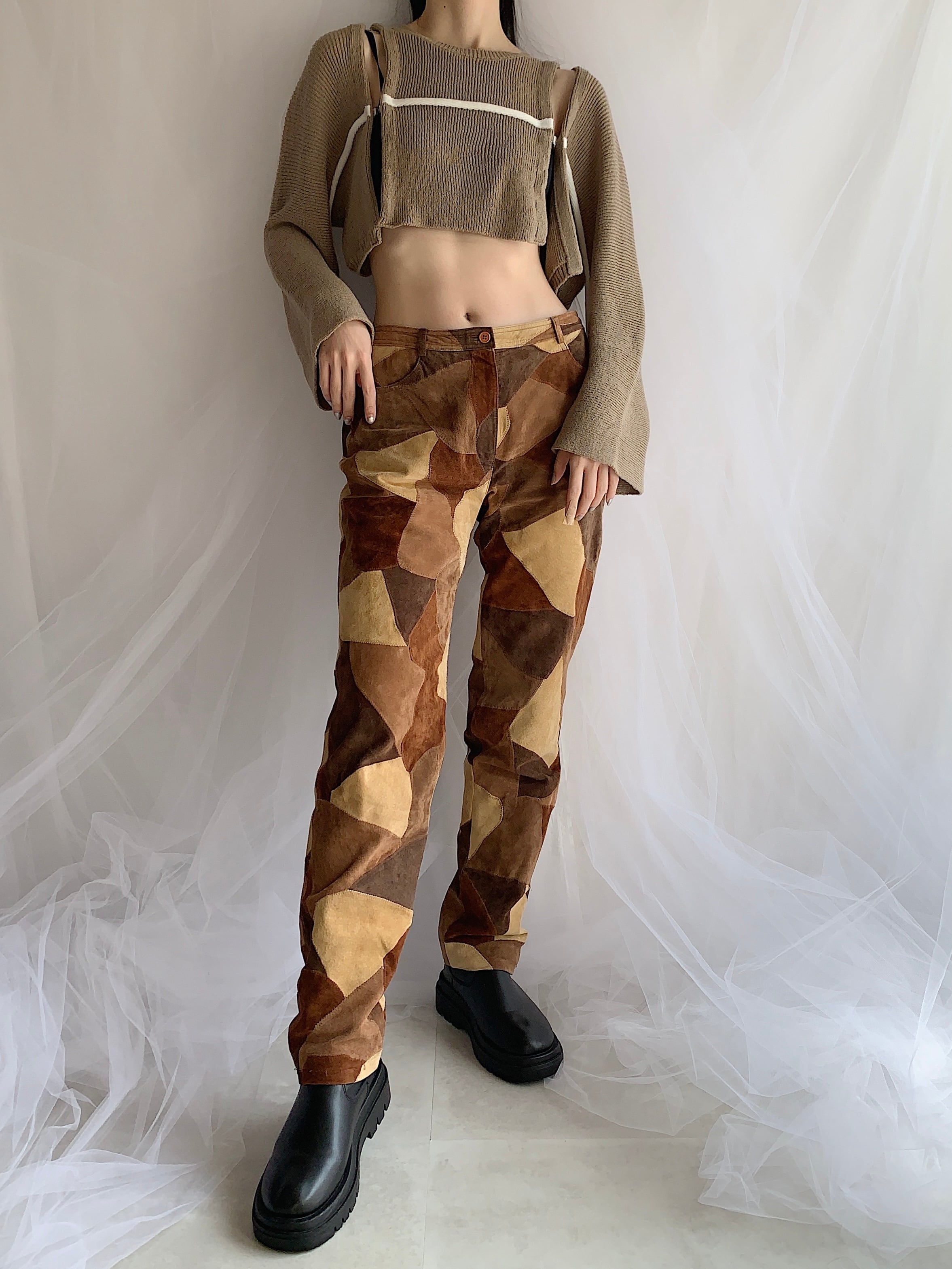 patchwork suede design pants