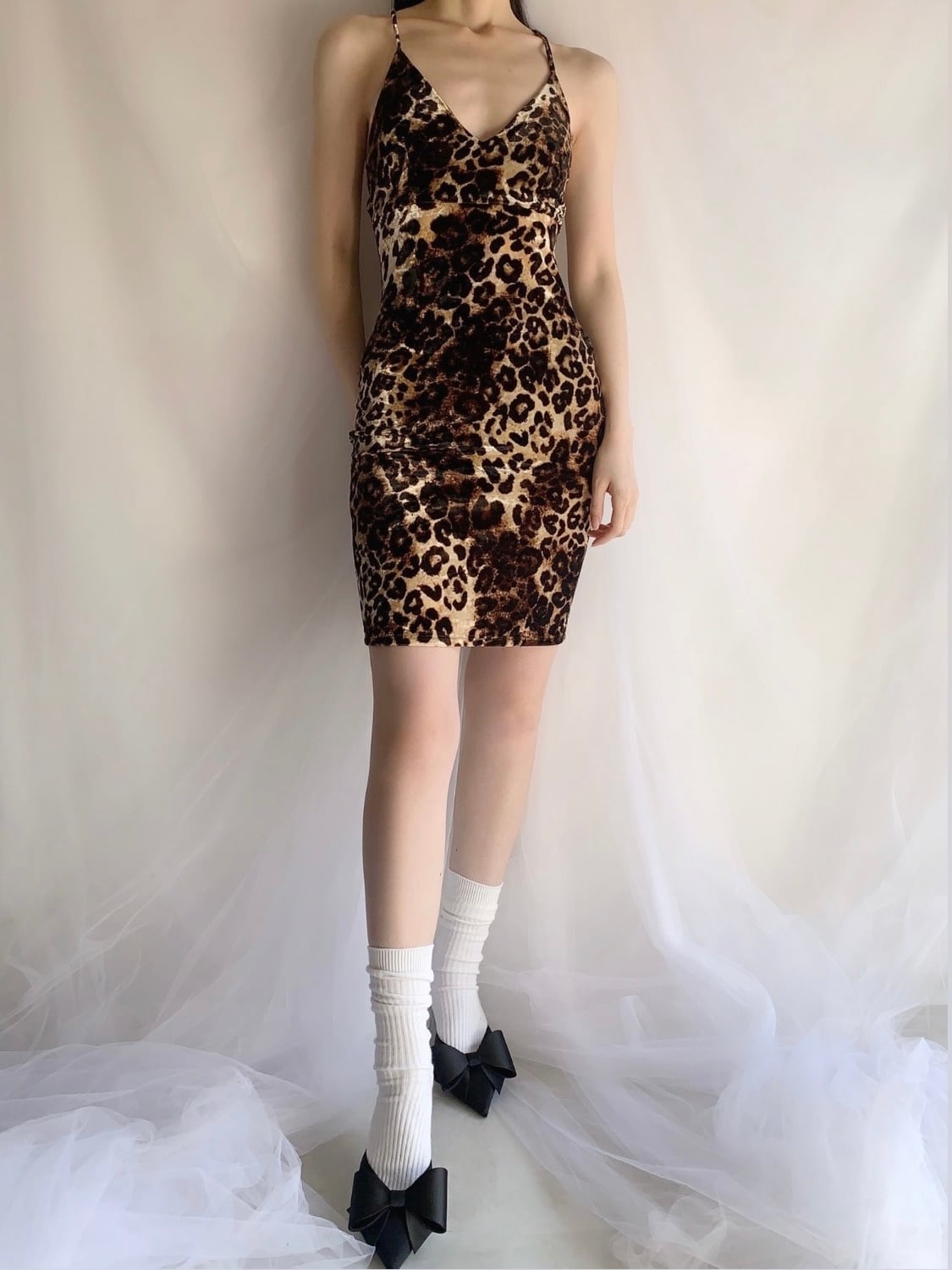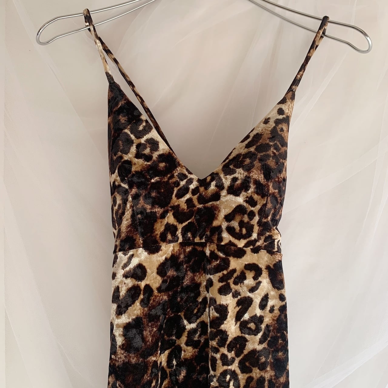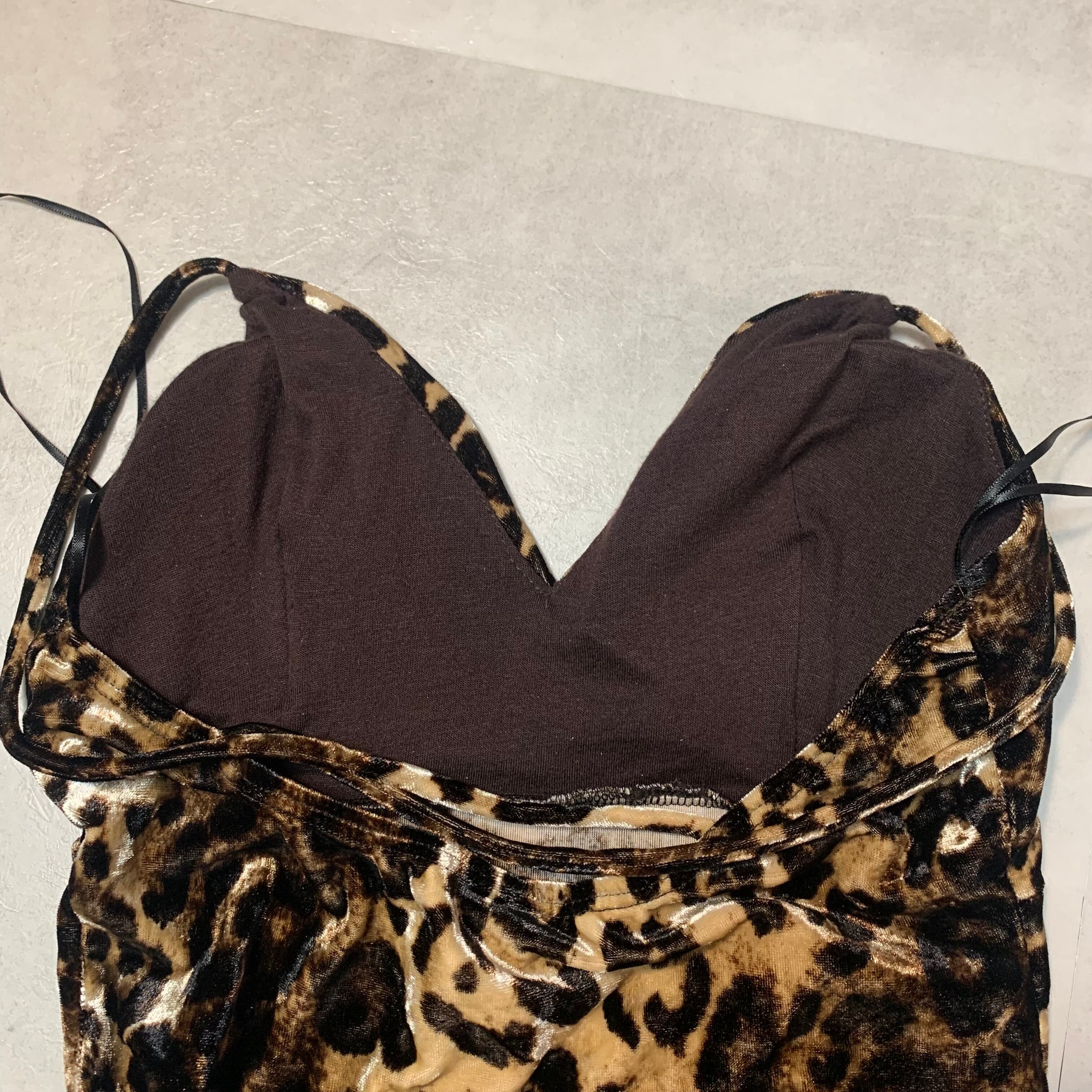 leopard velour design back cross camisole one-piece made in USA