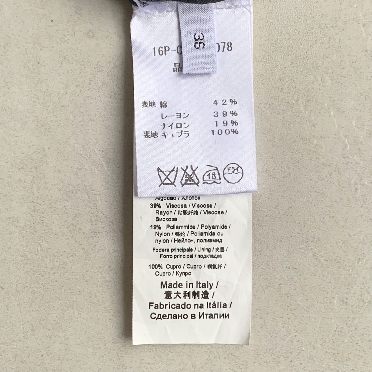 material:表地綿42% レーヨン39% ナイロン19% 裏地キュプラ100%