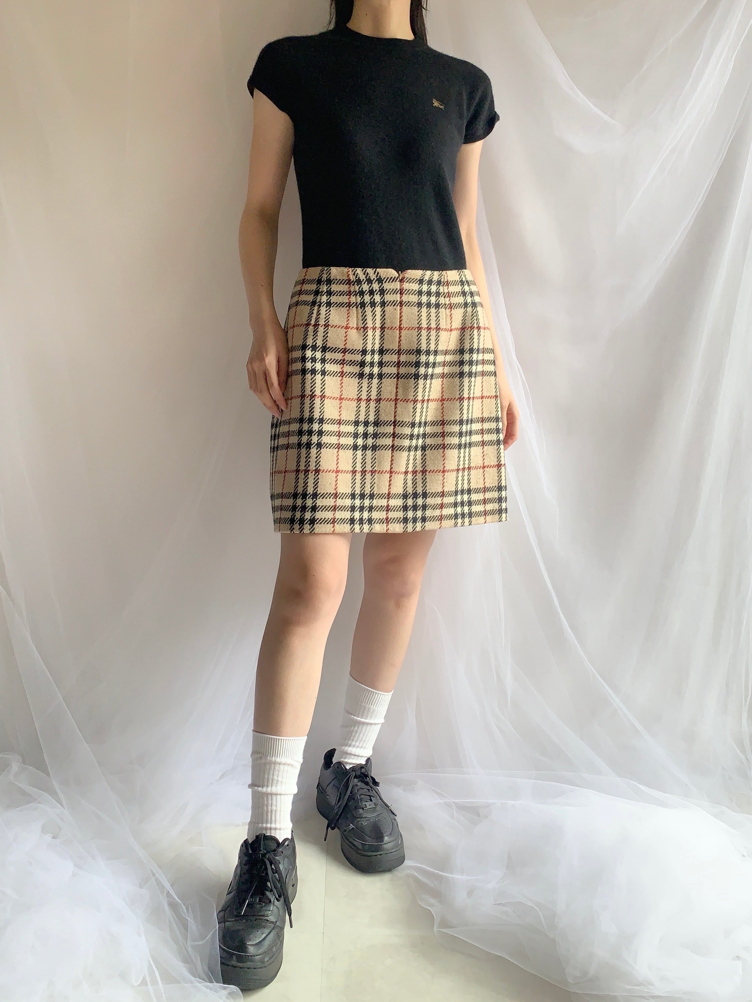 BURBERRY check design wool skirt