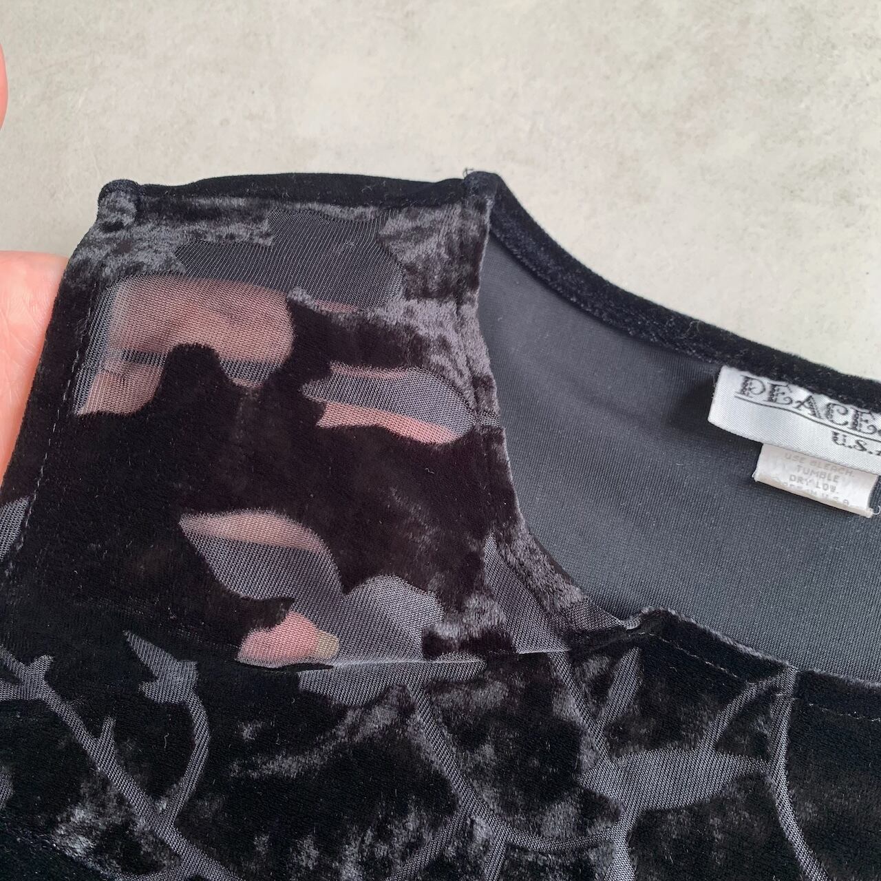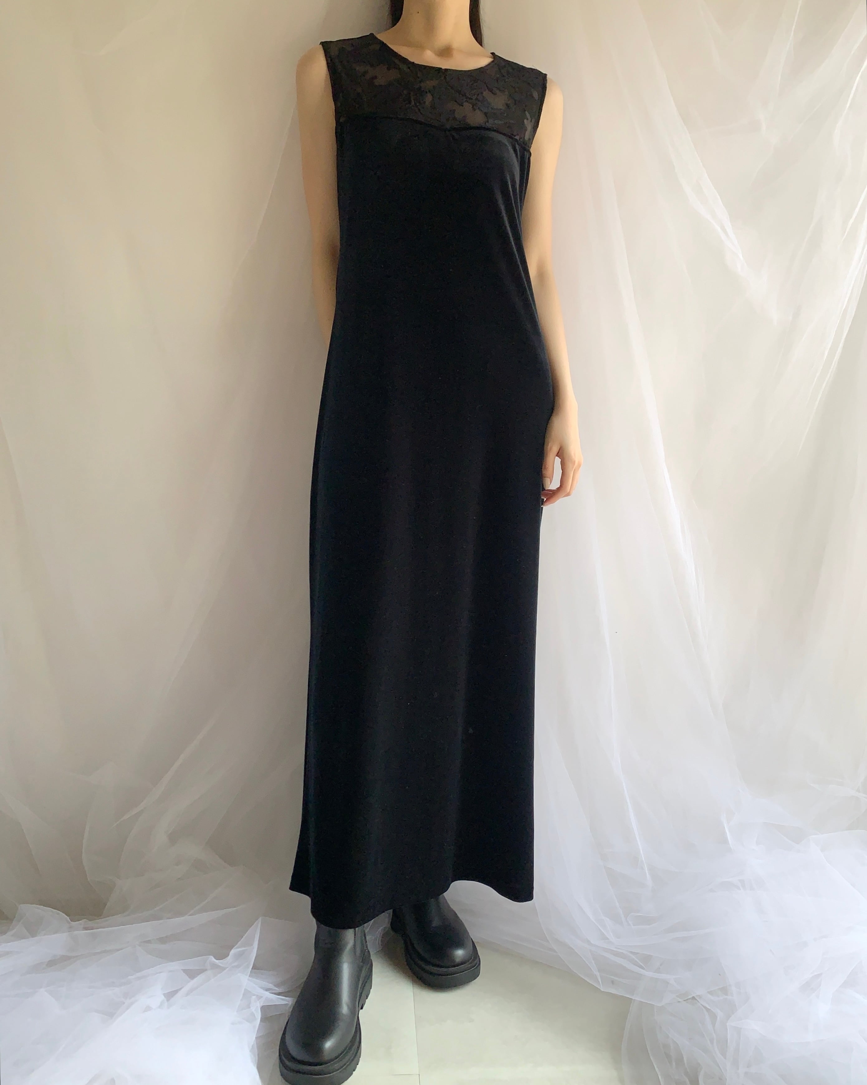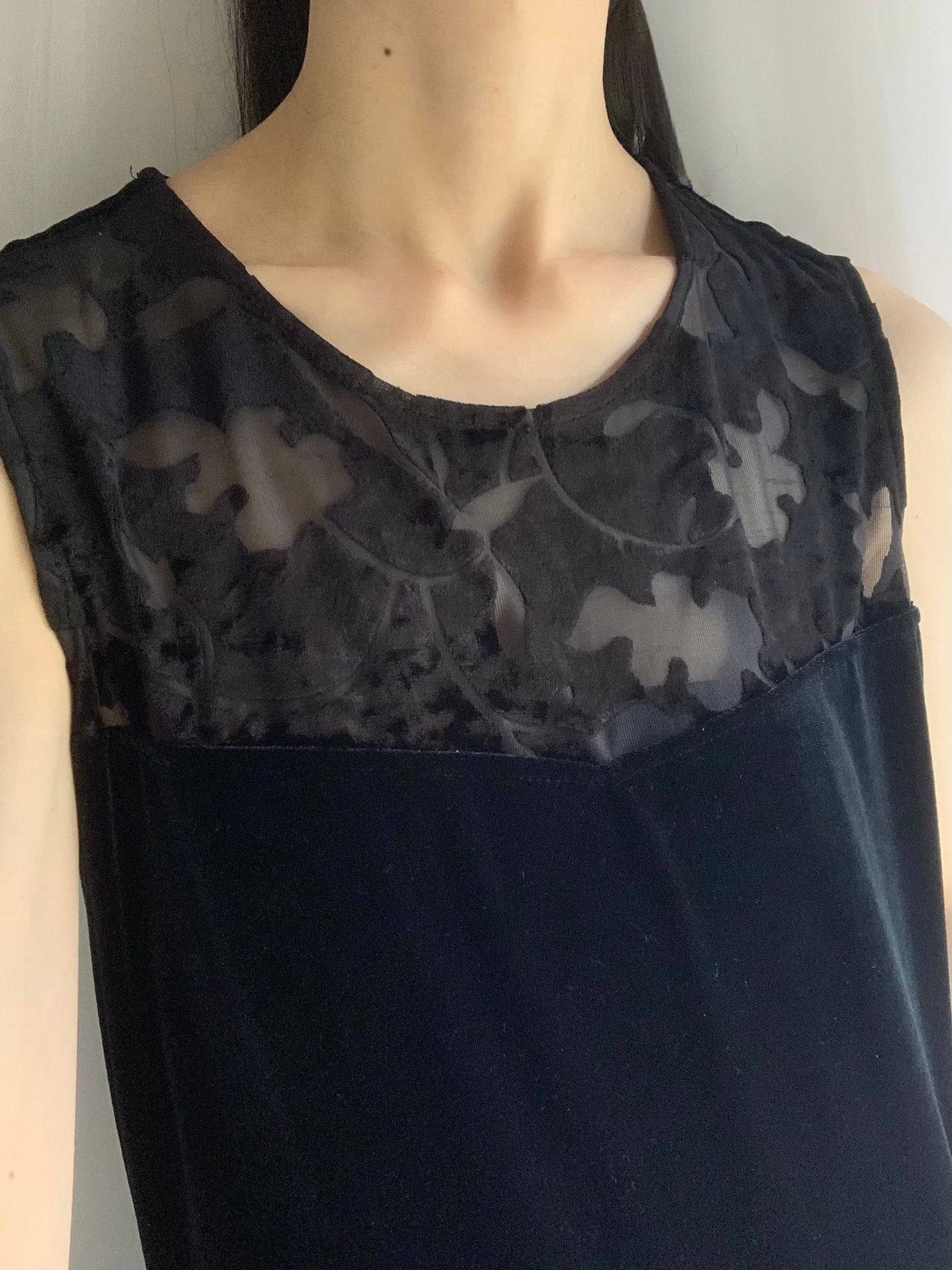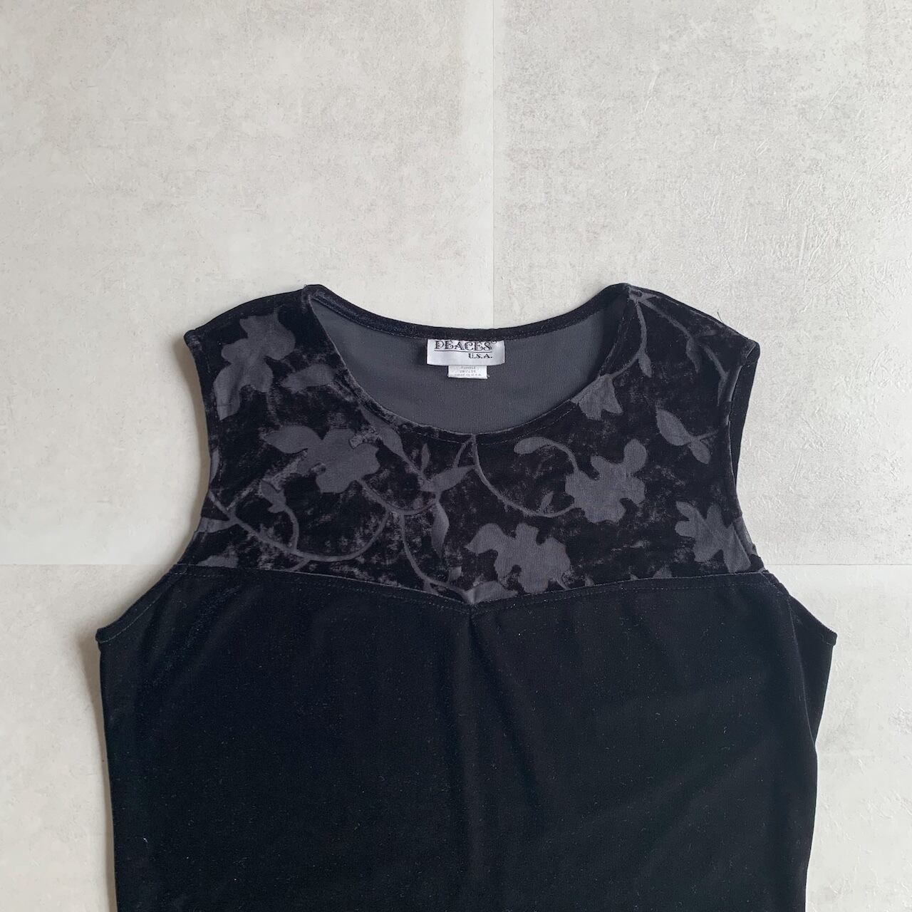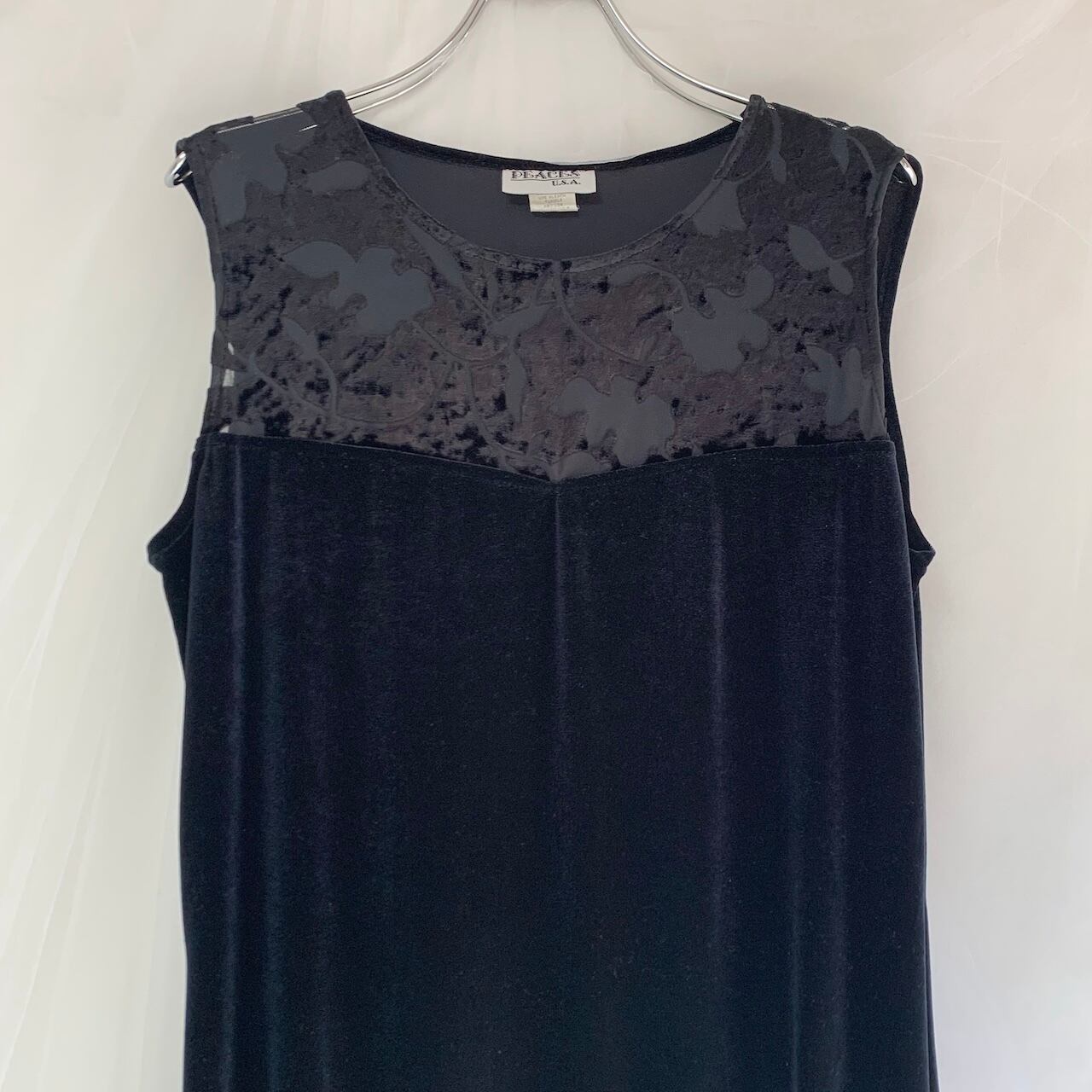 sheer velour design sleeveless one-piece made in USA