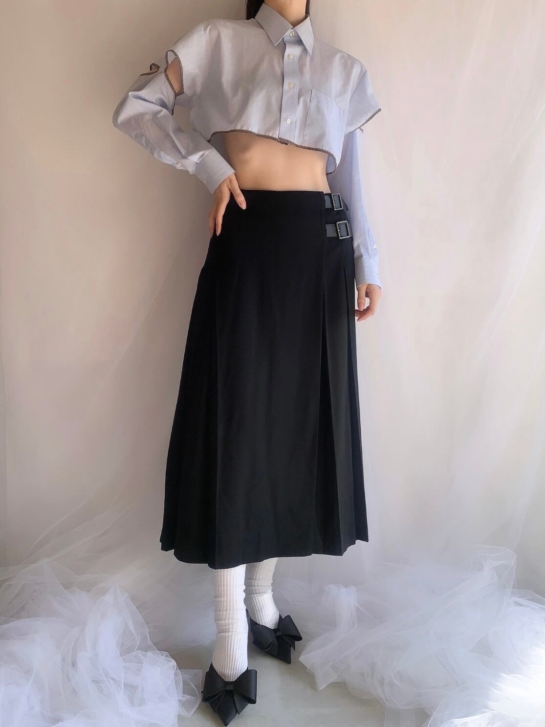 BURBERRY pleats belt design wrap skirt